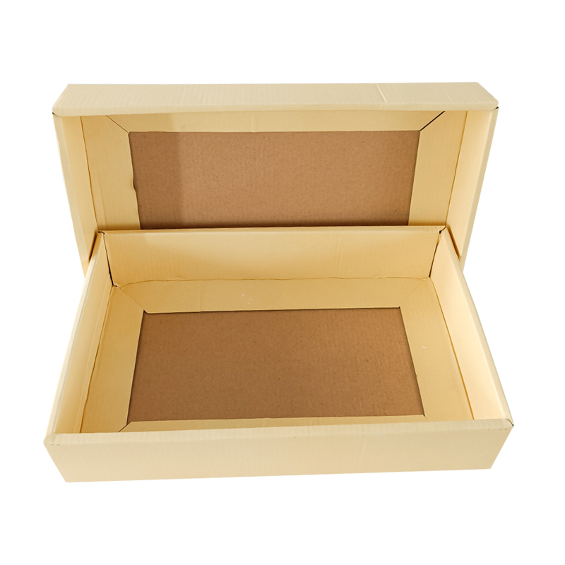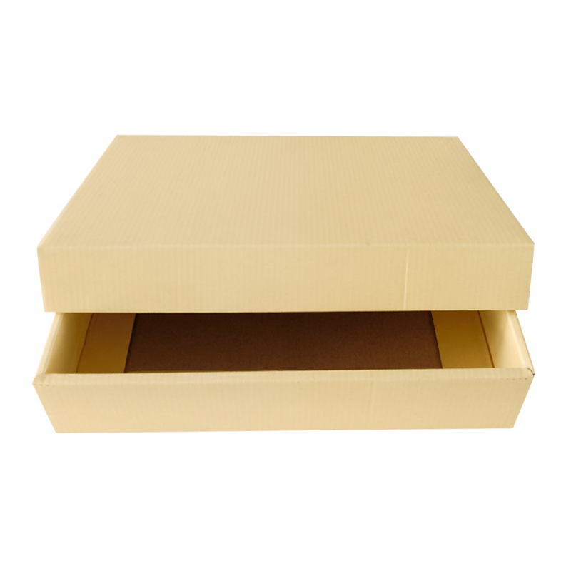 黄色瓦楞天地盖长方形的上下盖盒型,没有印刷,材质厚实耐用,多层瓦楞支撑,支持定制,免费设计