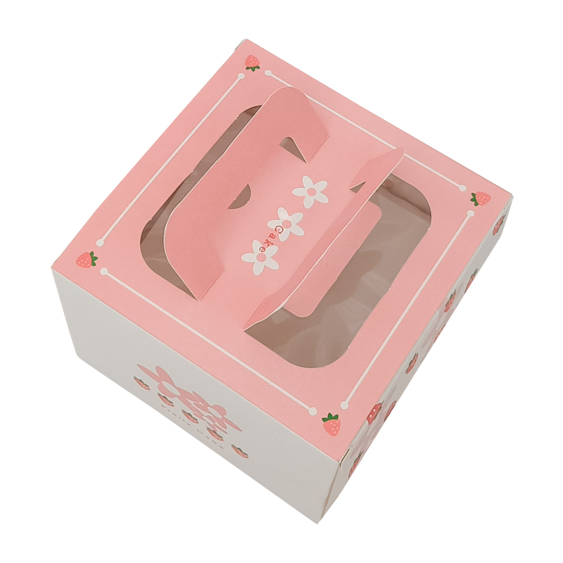 表面印刷粉色的小草莓图案和粉色的小花朵,让蛋糕盒看起来粉嫩可爱,增加顾客的食欲,印刷清晰颜色鲜艳,支持定制免费设计