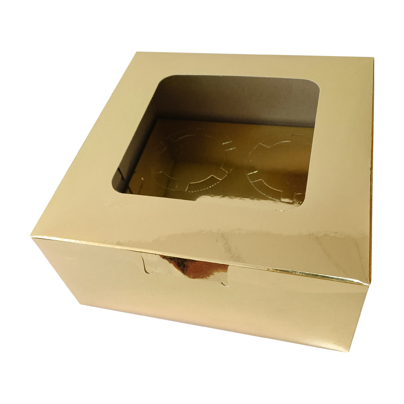 采用金卡制作,材质厚实耐用,支持定制免费设计,表面光滑平整,内部可放四个纸杯蛋糕或者蛋挞等甜点,欢迎随时联系我们