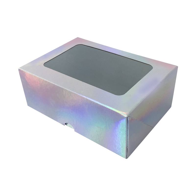 五彩镭射开窗蛋糕甜品盒采用特殊材质的镭射纸制作,表面色彩鲜艳,在光下呈现不同的颜色,支持定制免费设计,食品级材质,使用放心