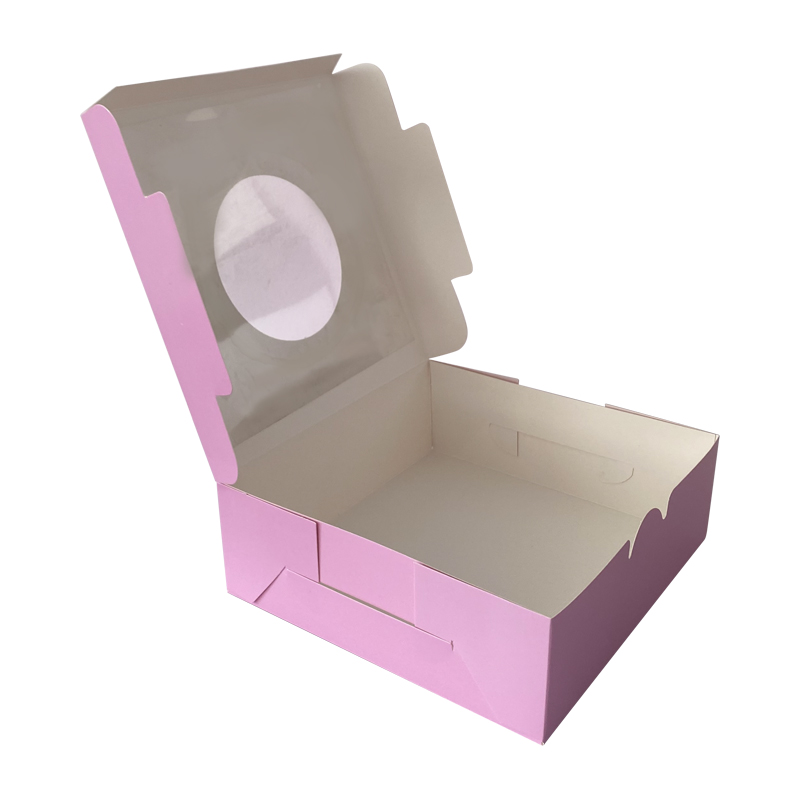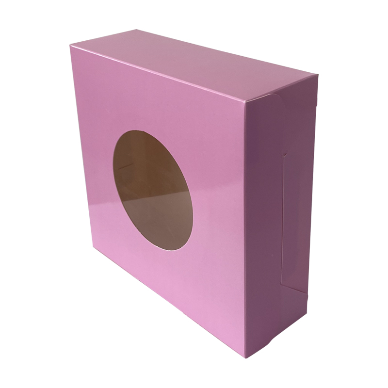 圆形开窗可折叠甜品盒正面是圆形的开窗,让盒子看起来更加柔软好看,食品级材质,表面防油防水,支持定制免费设计,使用放心无异味