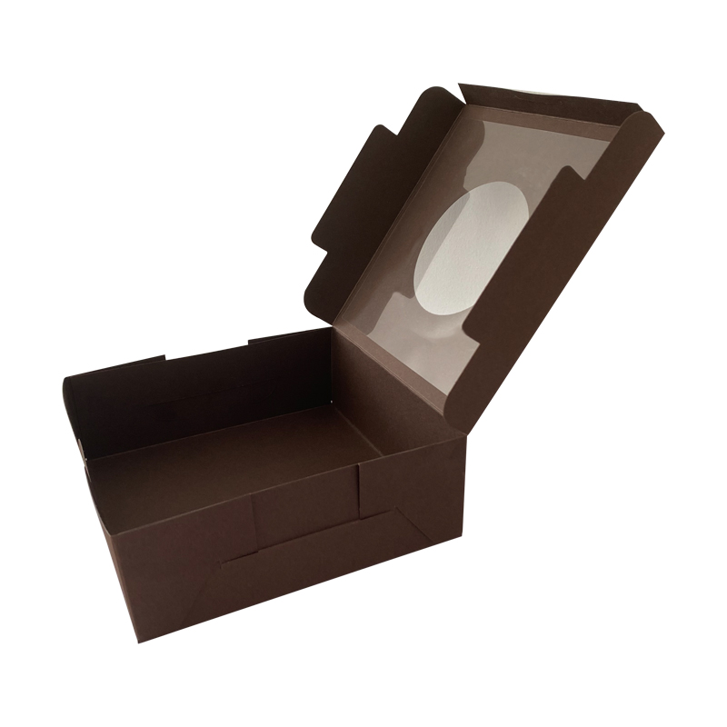 卡纸圆窗蛋糕面包包装盒棕色的卡纸制作,材质厚实耐用,颜色清晰鲜艳,食品级材质可以直接接触食物,使用放心,支持定制免费设计