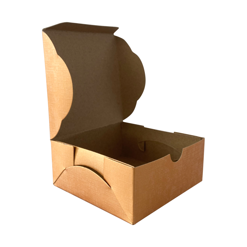 这款采用特殊纸质的蛋糕盒,表面有着棋盘格一样纹路,摸起来凹凸不平,但同时有着防水的能力,可以折叠使用,侧边切割圆润可爱,可以用来装不同的甜品,支持定制免费设计