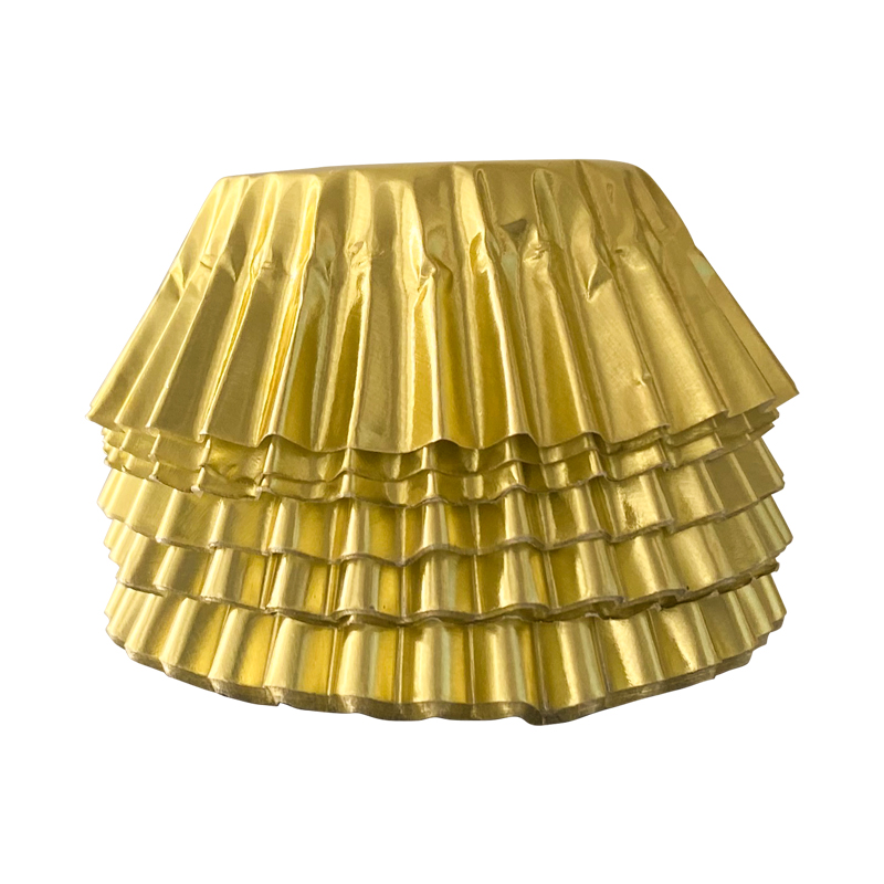 这款金色的食品级纸托,使用金色铝箔纸制作,不易撕裂,有波浪纹可以增大使用范围,保护产品不溢出,食品级材质,耐高温可冷藏,纸质包装可回收,保护环境,支持定制免费设计