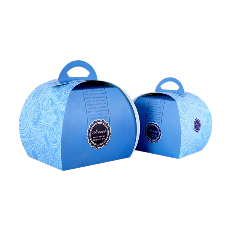 慕斯蛋糕包装盒手提糕点盒这款蛋糕盒顶部带有把手,方便外带使用,可以展开变成一片纸,方便存储和运输,食品级材质可以直接接触食物,表面印刷不同的图案,支持定制免费设计