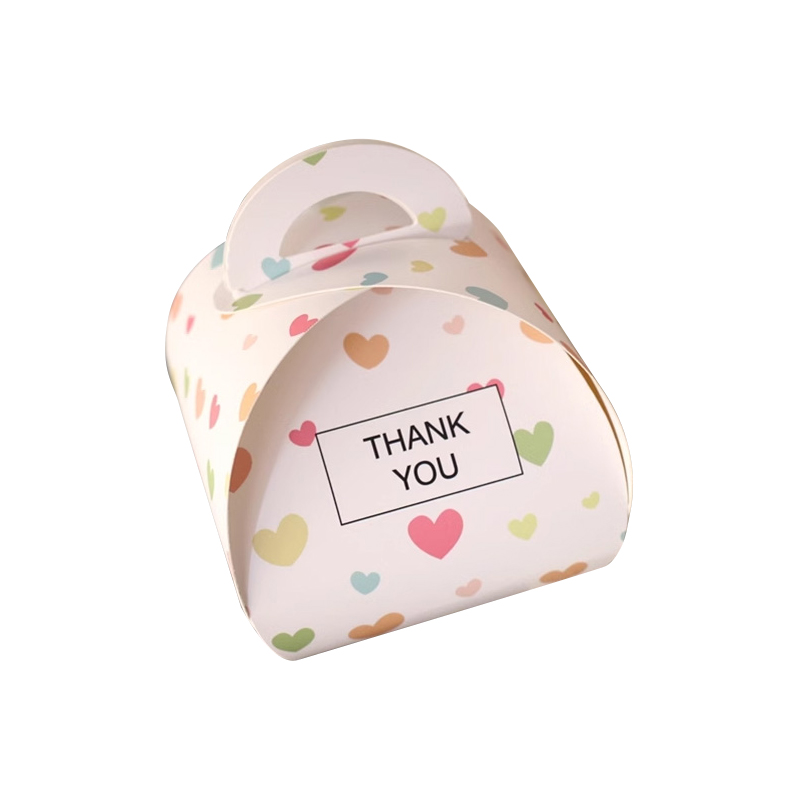 这款蛋糕盒顶部带有把手,方便外带使用,可以展开变成一片纸,方便存储和运输,食品级材质可以直接接触食物,表面印刷不同的图案,支持定制免费设计
