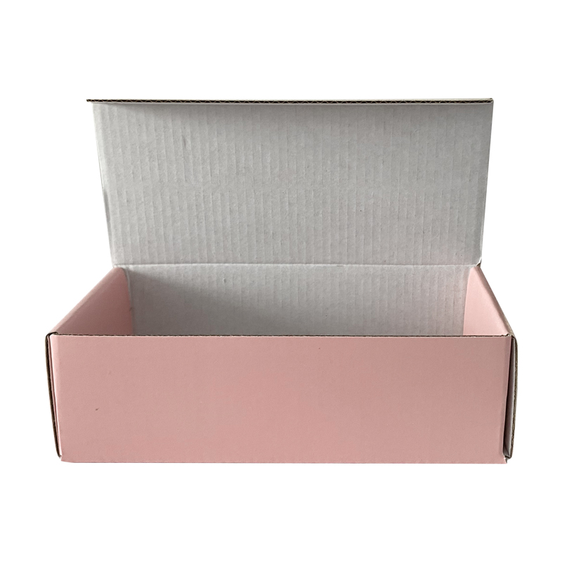 新设计瓦楞飞机盒粉色这是一款新设计的瓦楞飞机盒,没有常见飞机盒的小耳朵,适用于一些不太需要沉重的产品,例如首饰之类的,支持定制,免费设计