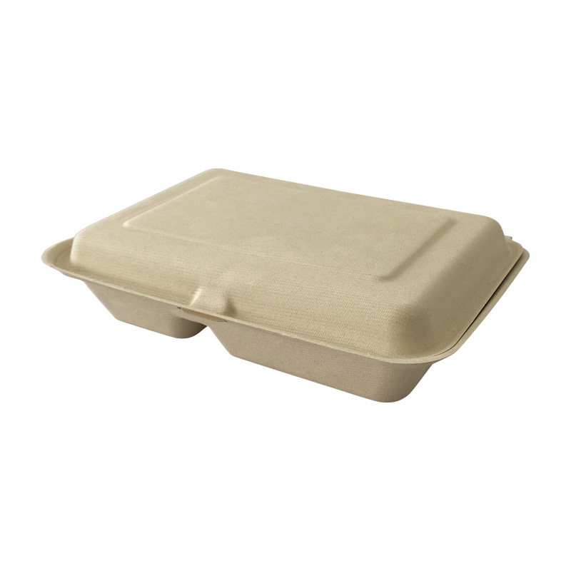 原木色双格甘蔗浆材质饭盒