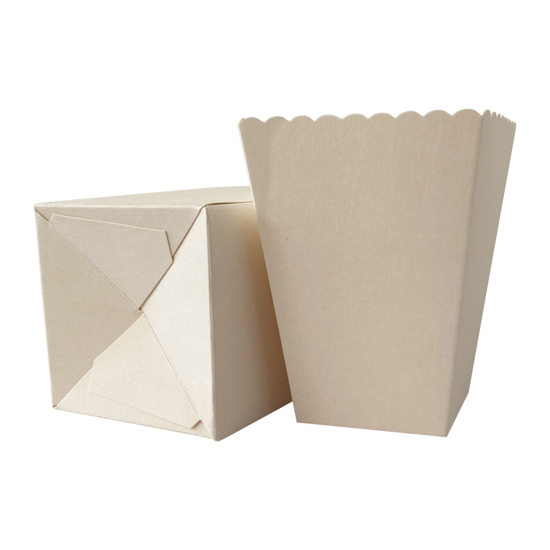 爆米花盒可降解特殊纸无印刷这是一款可折叠的爆米花盒,表面没有印刷,材质特殊,耐高温,可以与刚出锅的爆米花直接接触,食品级材质使用放心,无异味不掉渣,底部通过折叠一体成型,简单方便快捷,支持定制免费设计