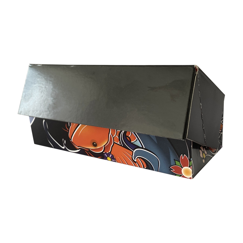 锦鲤寿司纸盒日式料理纸餐盒定制这款盒子的侧面印刷锦鲤图案,喜庆且印刷清晰,色彩鲜艳无色差,可以折叠使用,也可以轻松成型,食品级材质,可直接接触食物,支持定制免费设计