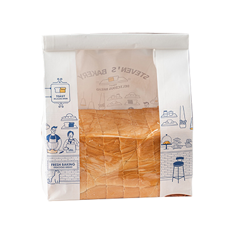 土司面包纸袋根据需求定制表面印刷,背面透明开窗部分可以设计,有专业的设计团队免费为你服务,食品级材质,使用放心没有异味,欢迎随时联系我们