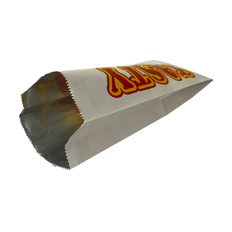 这款纸袋采用锡纸制作,开口部分采用上下口,食品级材质,内部防油防水,可以直接接触食物,使用放心,隔热保温,支持定制免费设计