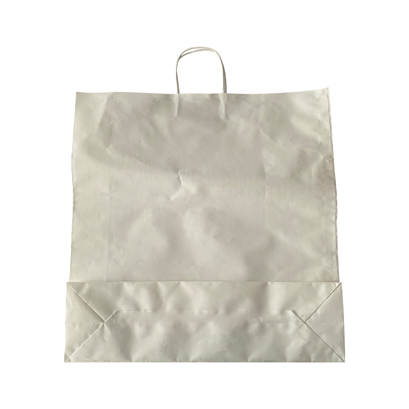 白牛皮纸加大纸袋购物商超袋这款定制的加大白牛皮纸袋,有着不同寻常的超大尺寸,主要是用来装比较大的产品,例如羽绒服、棉被、枕头等织物,粘合结实,带有把手,承重能力强,支持定制免费设计