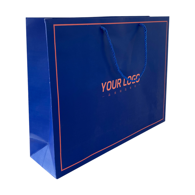 这款特殊的蓝色手提袋,让人眼前一亮,搭配不一样的亮色,凸显产品logo,可以用来装床单、被罩等家居用品,材质厚实耐用,可循环使用,支持定制免费设计