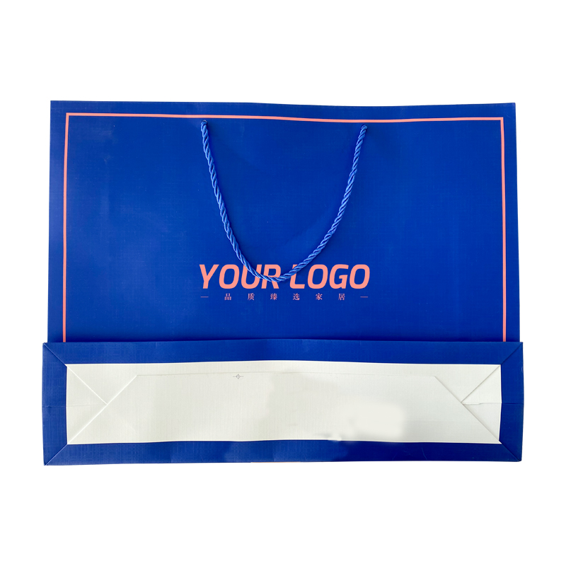 深蓝色家居手提购物袋这款特殊的蓝色手提袋,让人眼前一亮,搭配不一样的亮色,凸显产品logo,可以用来装床单、被罩等家居用品,材质厚实耐用,可循环使用,支持定制免费设计