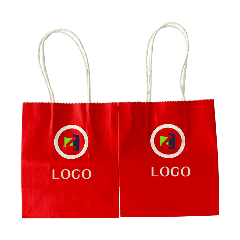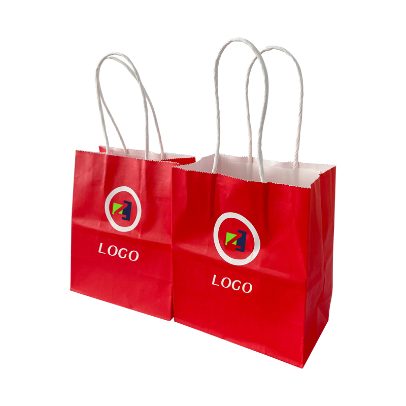 白牛皮纸红色手提袋零食纸袋这款纸袋表面是红色的,色彩清晰鲜艳,内部是白色的,底部胶水粘接结实,不易开口,材质厚实耐用,搭配白色手提绳方便使用,支持定制免费设计