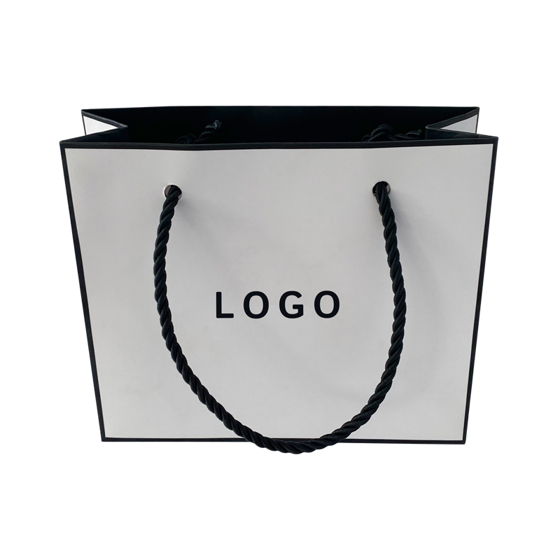 黑白经典手提袋奢侈品纸袋这款比较经典的色彩搭配手提纸袋,搭配同色系的双股手提绳,方便携带,底部粘合结实,不漏底材质厚实,支持定制免费设计