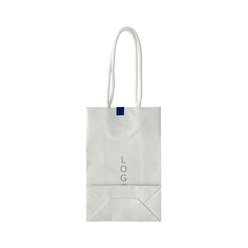 这款白色的手提纸袋使用特种纸,表面纹路手感细腻,高档优雅,纸质较为柔软,底部黏贴结实,搭配四股编织的棉绳,支持定制免费设计