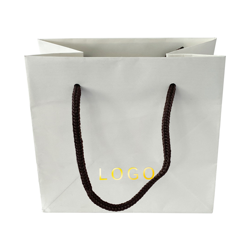 横纹烫金手提纸袋珠宝首饰纸袋这款是采用特种横纹纸制作的,材质摸起来富有手感,纹路清晰,底部印刷可回收标志,纸质包装可回收利用,支持定制免费设计