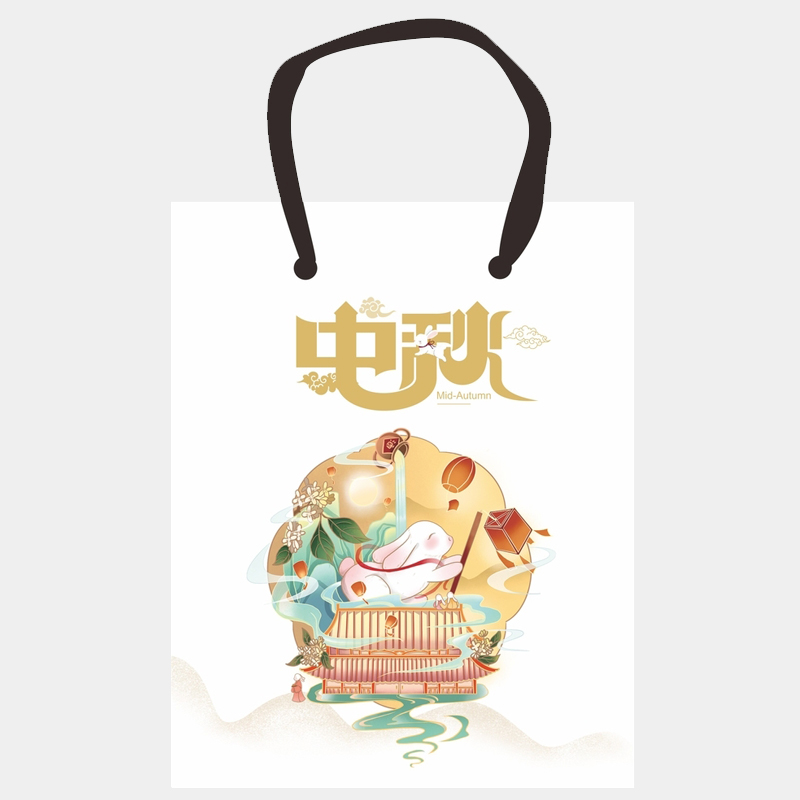 国潮风中秋月饼手提袋这是一款国潮风格设计的手提袋,非常的精美、好看。搭配丝带手提袋,不勒手,不抽丝。支持定制,免费设计。