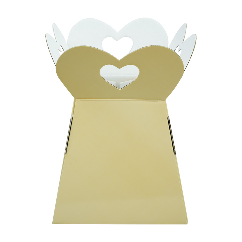顶部是心形和镂空设计,可以很好的支持花束的直立,让花朵展示的更漂亮方便,纸质材质可回收使用,支持定制免费设计