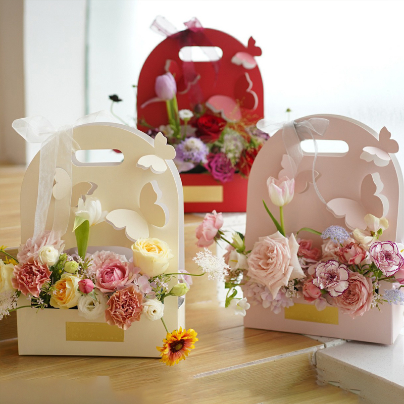 仙气飘飘的纸质蝴蝶手提花盒,通过蝴蝶设计与花相呼应,让盒子看起来更加漂亮,材质厚实耐用可以折叠,也可以放咖啡奶茶等其他物品,欢迎随时联系我们