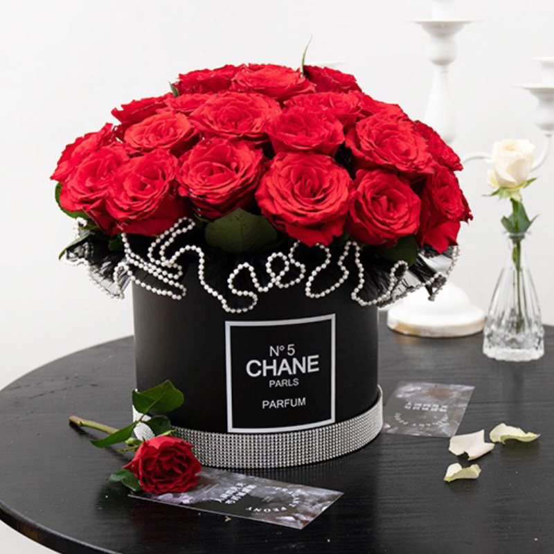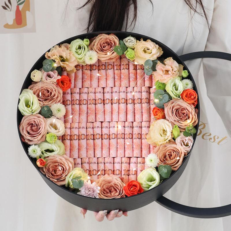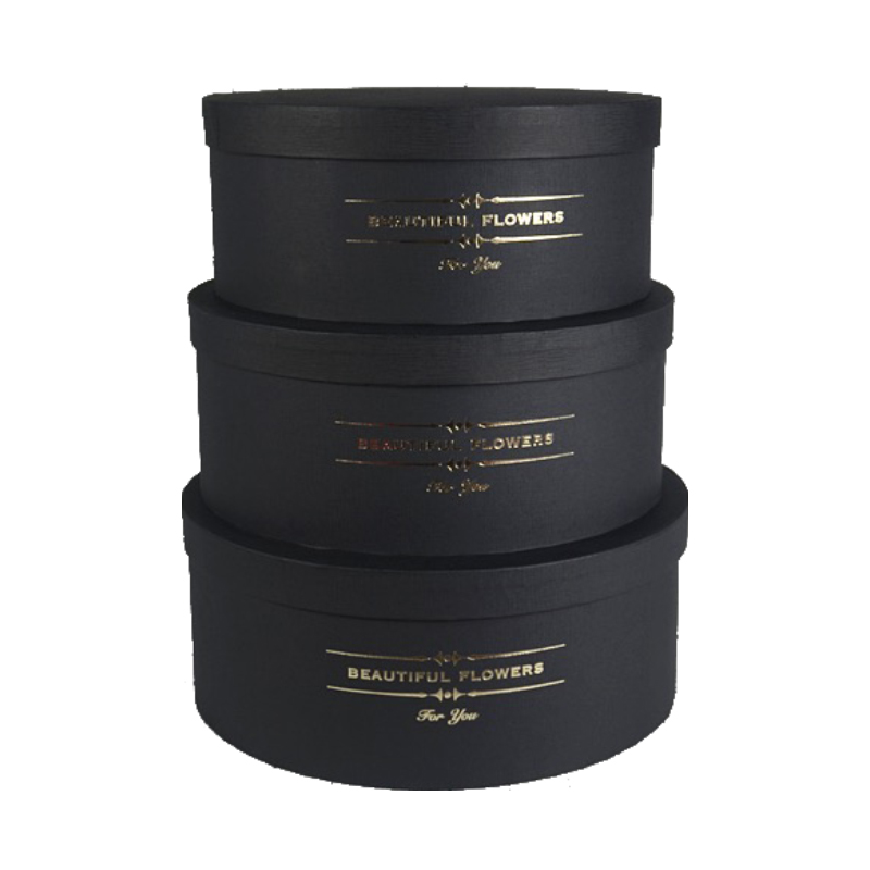 黑色烫金logo圆形花盒节日送礼花筒
