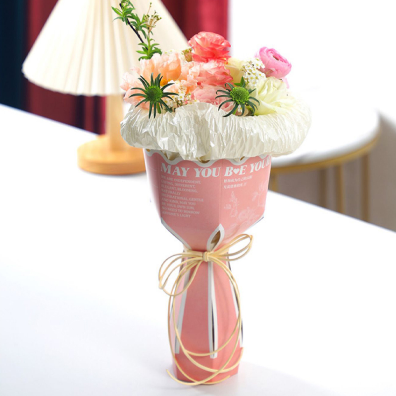 七夕单支花束包装盒鲜花资材定做这是一款采用卡纸制作的花盒,表面印刷英文和图案,让盒子看起来更加文艺,可折叠使用,平铺发货节约存储空间,搭配丝带等增加花束的档次,支持定制免费设计