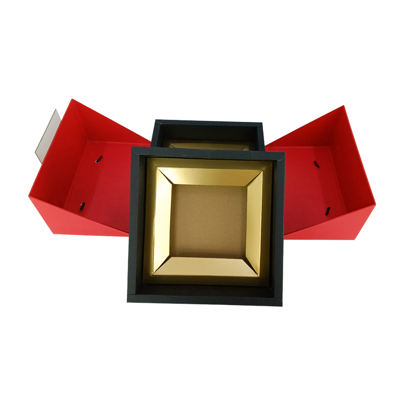 双开门中秋节月饼两层节日礼盒采用特殊开合方式,给人惊喜,硬纸板粘合卡纸,材质厚实耐用,内部嵌套也是纸质材料,带有手提绳,方便携带使用,支持定制,免费设计