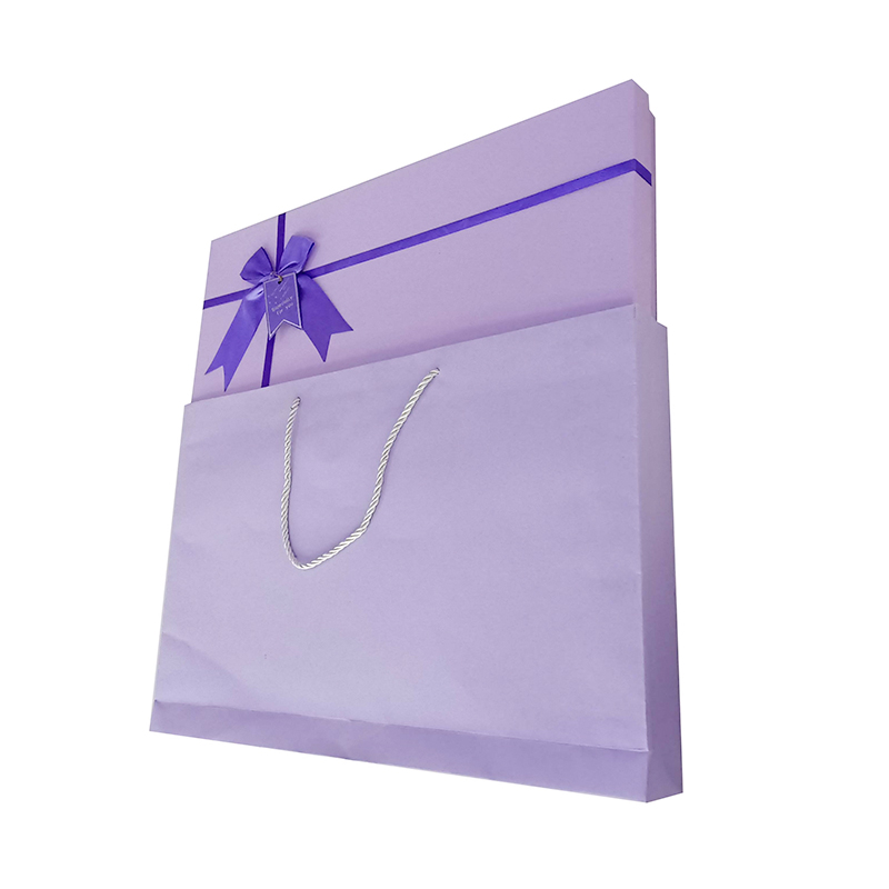 薰衣草紫色礼盒套装一款比较普通的礼盒套装,搭配手提袋与小卡片,颜色款式都可以定制,免费设计,盒子简约漂亮精美,欢迎随时联系我们