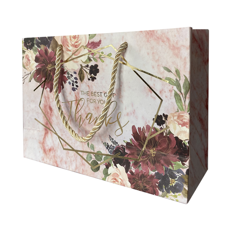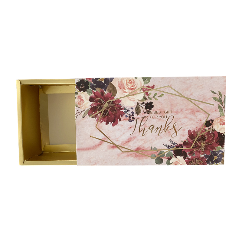 这是一个比较常用的伴手礼礼盒,手提袋搭配抽拉盒印刷相同的内容,表面都是烫金的文字,印刷清晰漂亮,内部抽拉盒的部分采用金色卡纸制作,容量较大,可以用来装糖果、烟盒、巧克力等伴手礼,支持定制免费设计