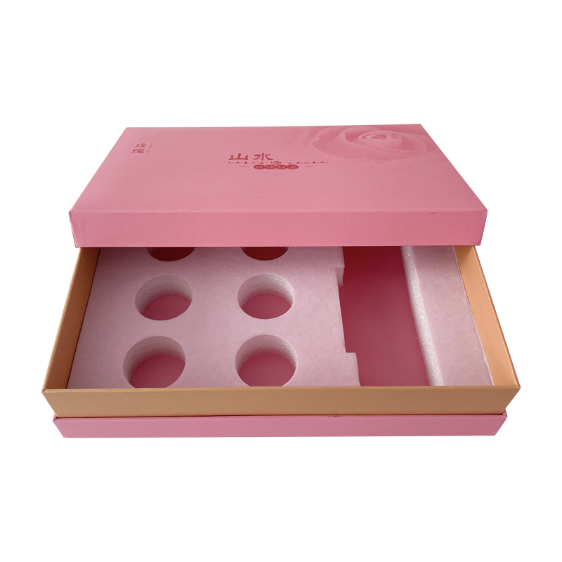 玫瑰红茶礼盒套装这是客户定制的款式,纸袋表面纹理细腻,摸上去有凹凸的手感,搭配烫红金工艺,内部天地盖盒型,内嵌式海绵切割,可以更好地固定产品,减少磕碰,支持定制免费设计