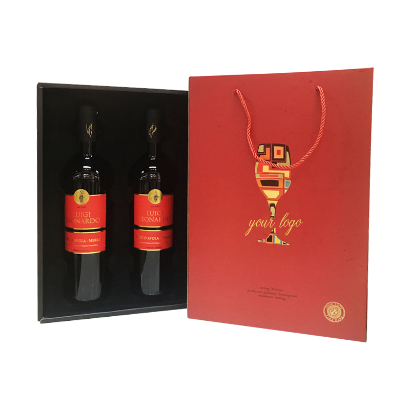 红酒礼盒干红葡萄酒包装盒这款红色的礼盒,表面印刷清晰,色彩鲜艳,内部是黑色绒布的衬底,和泡沫粘合,黑色能够更好的凸显产品的,采用瓦楞材质制作的盒托,承重能力强,支持定制免费设计