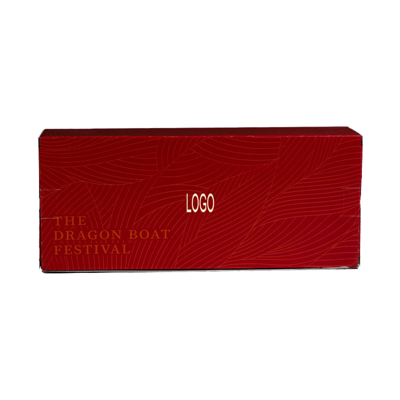 粽子礼品包装纸盒整体是红色的,表面印刷纹路,盒子看起来简约不简单且高档,材质厚实且耐用,支持定制,免费设计,20多年的工厂经验丰富