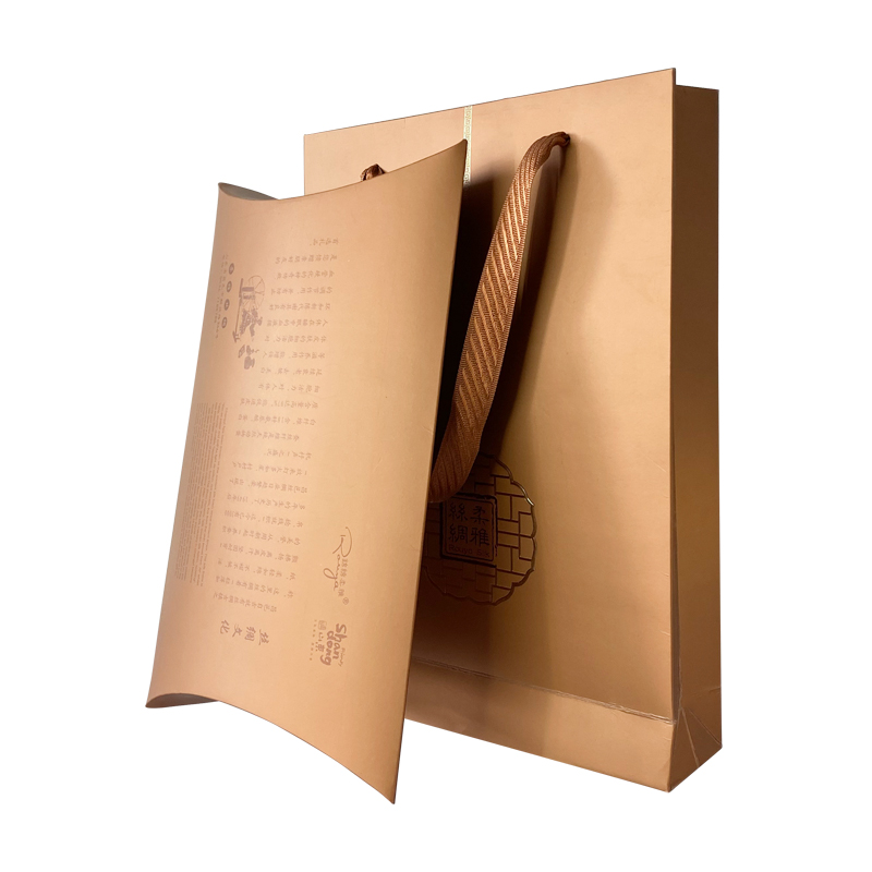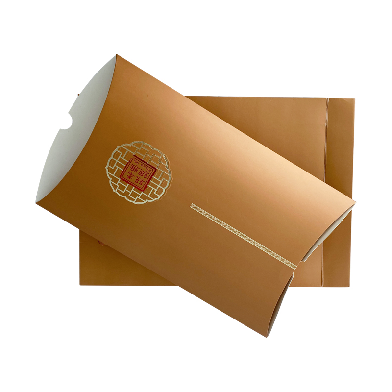 这是一款套装礼盒,内部是一款比较特殊的盒子-枕头盒,形似枕头故名,采用卡纸制作,表面覆膜烫金凹凸等工艺,支持定制免费设计