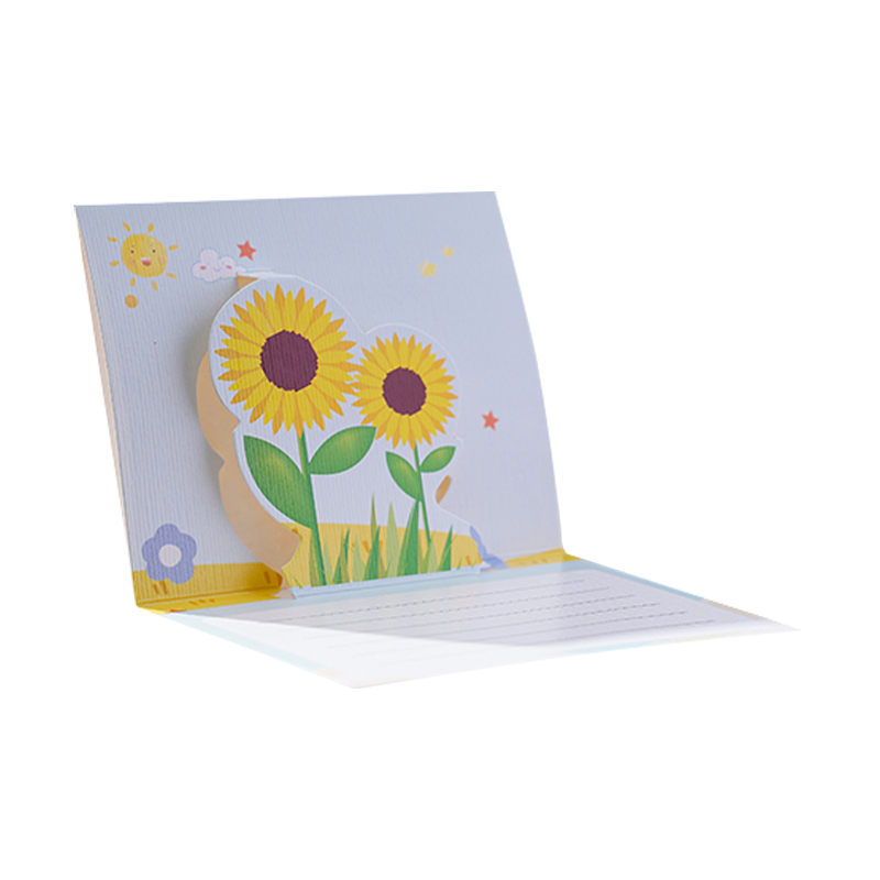 这是一款立体的小贺卡,可以定制不同的图案,像兔子、熊猫、向日葵等,可爱有趣,下面的部分可以写文字,支持定制免费设计