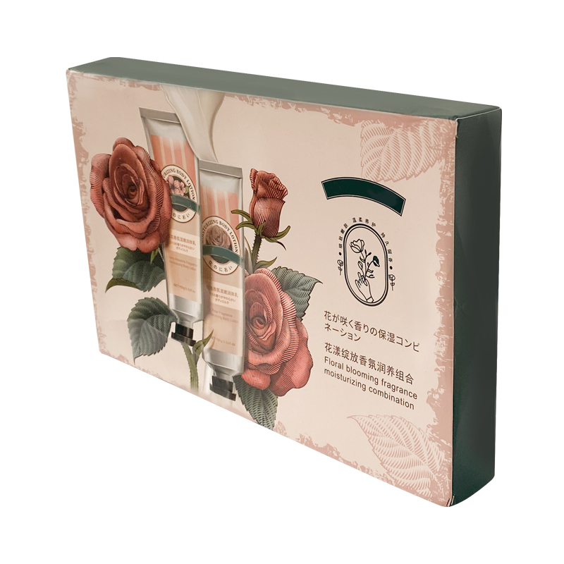 护手霜保湿精华包装盒美妆护肤品礼盒定制这是一款复古设计的双插盒,表面印刷玫瑰与产品信息,采用凹凸与UV的工艺将产品内容突出,让客户加深产品印象,增加盒子的档次,印刷清晰细腻,盒子可以折叠使用,方便简单,支持定制免费设计