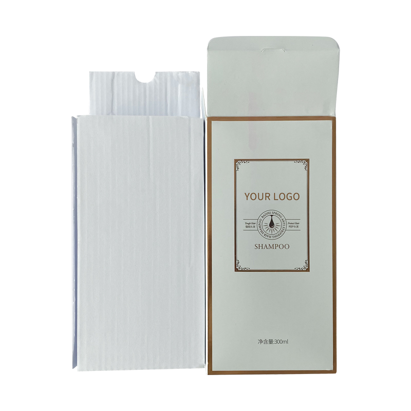 沐浴露翻盖插底盒 瓦楞内衬烫金logo这是一款带有瓦楞内衬的翻盖插底盒型,内部纸壳可以减震保护产品,盒子表面采用烫金制作logo,盒子可以折叠使用,支持定制免费设计