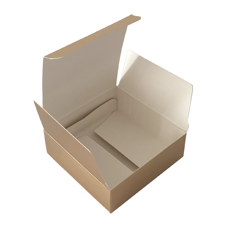 这是一款美妆产品的包装盒,采用金卡纸制作,表面闪闪发亮,logo也采用烫金的工艺制作,盒子可以折叠使用,支持定制免费设计