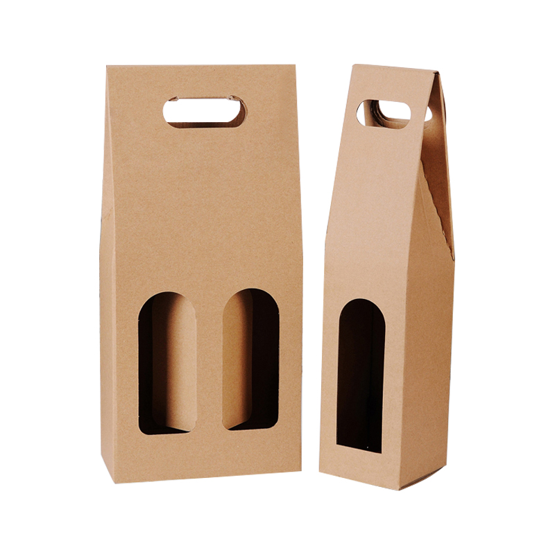 红酒手提盒葡萄酒包装盒这款采用较厚牛皮纸制作的手提酒箱,正面开窗设计,可以看到内部产品的状态,沉重能力强,可以折叠,使用方便,支持定制免费设计